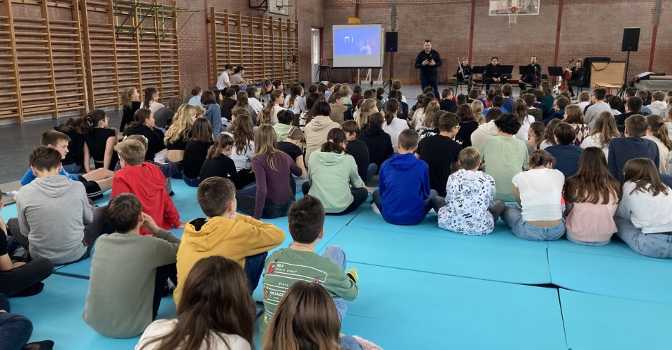 November 10-én a Lázár Ervin Program keretében az 5-7. évfolyamosok a zene és a tánc kapcsolatáról hallgattak meg egy előadást egy kamarazenekar részvételével.