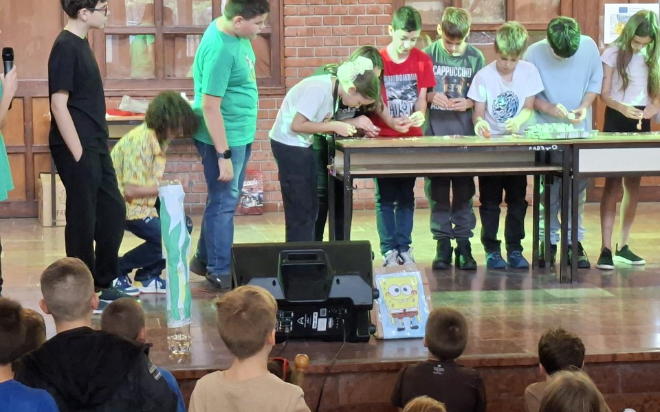 A szeptember 26-án avattuk batyis diákká az 5.a és 5.b osztály tanulóit a 6. évfolyam által megrendezett giliceavatón.