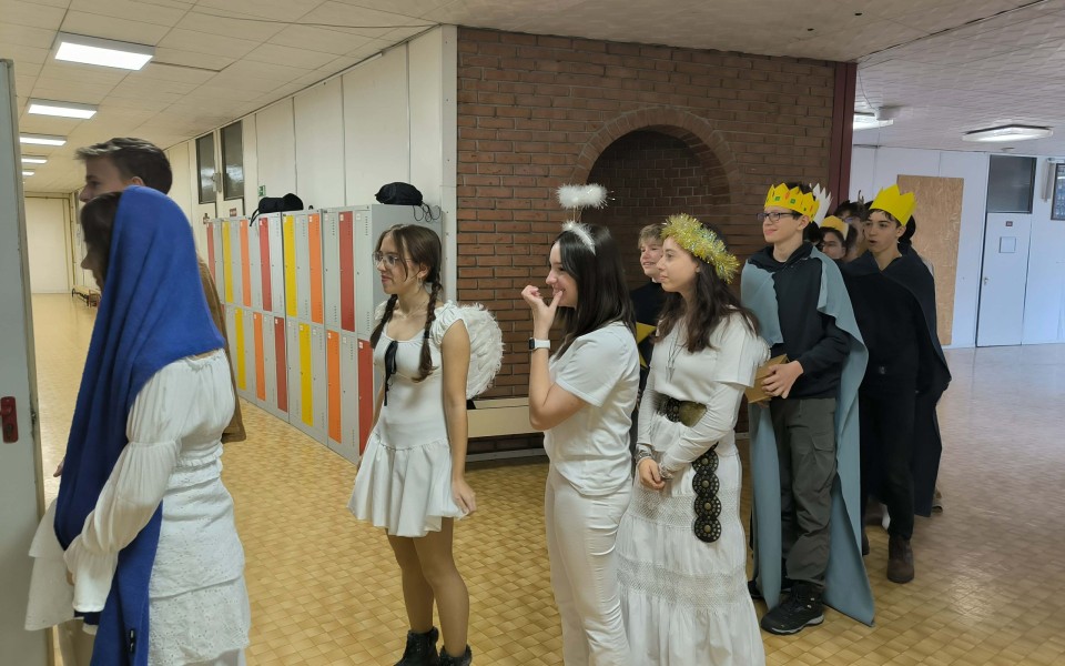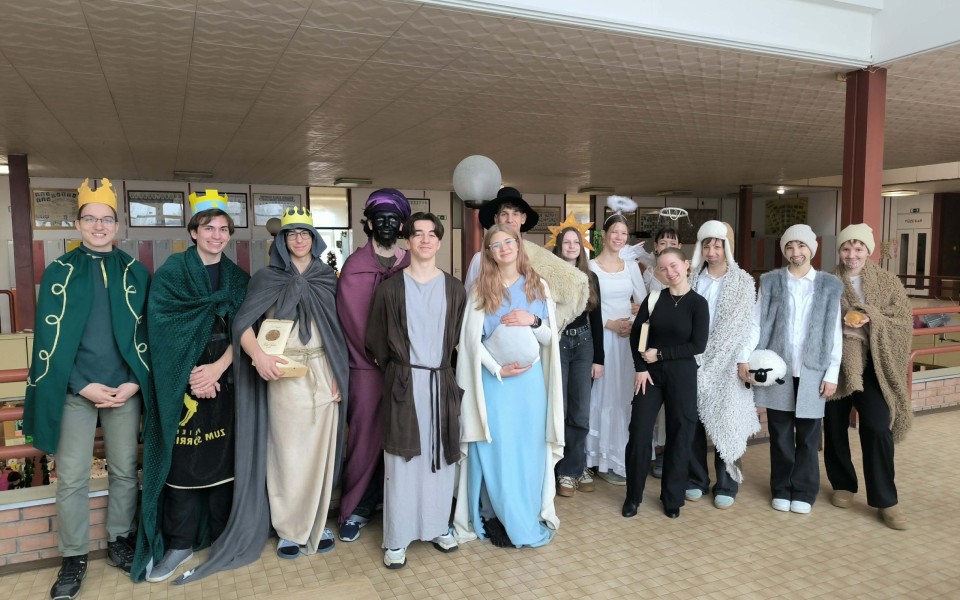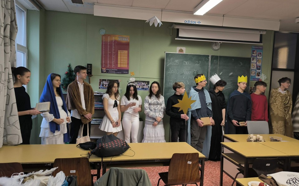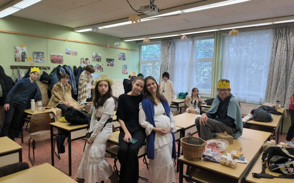 A betlehemezés a karácsonyi ünnepkör egyik szép magyar népszokása. Idén Patai Ágnes szervezésében a 9.b osztály járta végig az osztályokat, felelevenítve a bibliai történetet.