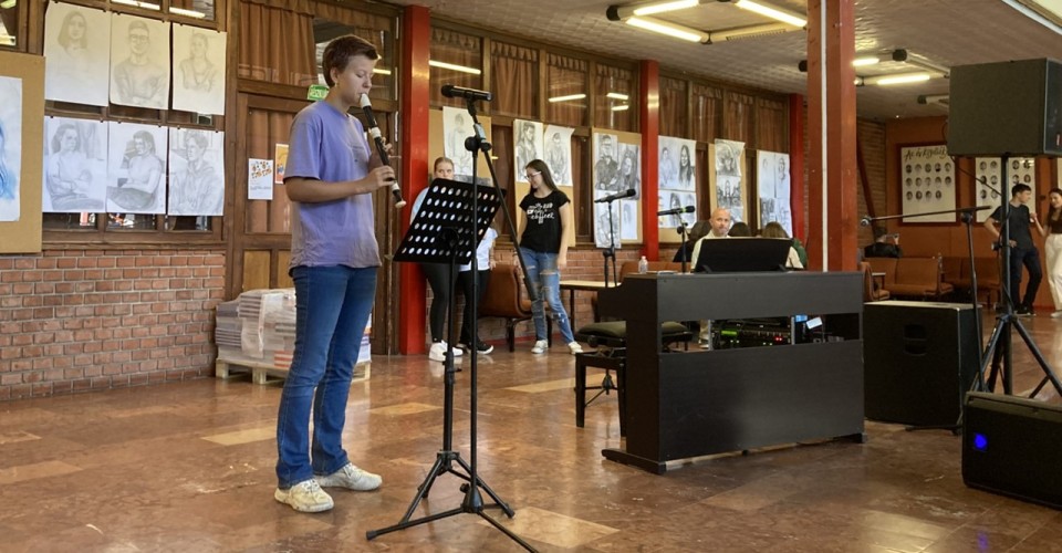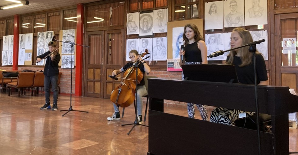 Október 1-én ünnepeltük a zene világnapját. Ebből az alkalomból Dobos Krisztián tanár úr szervezésében diákjaink produkcióit hallhattuk a szünetekben.